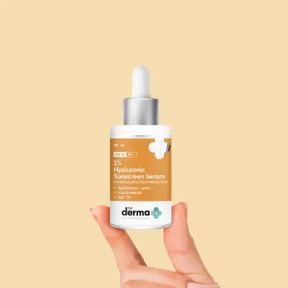 Sunscreen in the form of a serum? Introducing The Derma Co 1% Hyaluronic Acid Sunscreen Serum, a revolutionary product that enhances the protective skin barrier. This lightweight formulation combines sunscreen’s benefits with serum, making it even more attractive to apply. With no white cast or heaviness on the skin, this effective sunscreen protects your skin from harmful UVA and UVB rays while providing a radiant glow. Rich with the benefits of 1% Hyaluronic Acid and hyaluronic, this sunscreen serum maintains your skin’s hydration and is suitable for all skin types, especially those with sensitive skin. hyaluronic in this sunscreen serum helps strengthen your skin barrier, hydrate your skin, promote even skin tone, and leave you with clear and flawless skin with every application. Additionally, achieve luminous and glowing skin with our fragrance-free formulation and protect your skin from harmful sun damage while maintaining your skin’s natural glow. Enjoy the benefits of sunscreen with its easy-to-apply serum formulation that enhances your skin’s overall texture. It’s time to upgrade your skincare regime with our safe and effective sunscreen serum and achieve naturally glowing and radiant skin with maximum sun protection.