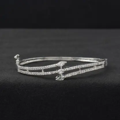Add a touch of contemporary elegance to your ensemble with these Guaranteed White Gold Plated Bangles from Shreehari’s Modern Collection. Perfect for special occasions, festive celebrations, parties, or gifting, these bangles bring a sophisticated shimmer to any outfit. Designed to complement sarees, Indian suits, kurtis, and even formal attire, they are versatile and stylish for women of all tastes. The pristine white gold plating ensures lasting shine and a refined finish, making them a standout accessory. Lightweight and comfortable to wear, these bangles effortlessly combine modern design with timeless charm, making them an essential addition to your jewelry collection.