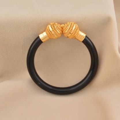 Add a touch of tradition and grace to your look with this single black-colored pola bracelet bangle, elegantly gold-plated and designed without chabi for a sleek finish. Perfect for women who cherish cultural charm, this bangle blends classic style with everyday practicality. Whether you’re dressing for a special occasion, traditional event, or simply elevating your everyday or office wear, this bangle pairs beautifully with sarees, Indian suits, and kurtis. The deep black hue symbolizes elegance and strength, while the lustrous gold plating adds a radiant glow. A timeless piece that effortlessly combines tradition with modern elegance.