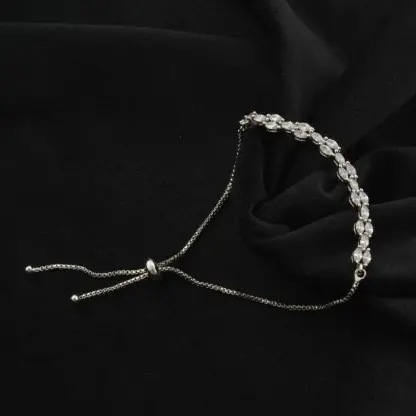 Elevate your elegance with this Guaranteed AD White Gold Plated Bracelet from Shreehari’s Modern Collection. Designed to add a refined sparkle to every look, this bracelet features brilliant American Diamond stones that exude sophistication. The premium white gold plating ensures a lasting shine, making it perfect for daily office wear, memorable special occasions, or thoughtful gifting. Its versatile design blends seamlessly with sarees, Indian suits, kurtis, gowns, and even formals, making it a must-have accessory for every modern woman. Lightweight, stylish, and timeless, this bracelet is more than just jewelry—it’s an expression of grace, confidence, and effortless charm for every occasion.