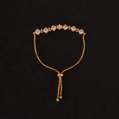 Add a touch of brilliance to your ensemble with this Guaranteed AD Gold Plated Bracelet, crafted to shine on every occasion. This elegant bracelet features dazzling American Diamond stones set in a rich gold-plated finish, combining modern style with traditional grace. Perfect for special occasions, parties, and even sophisticated office wear, it pairs beautifully with sarees, Indian suits, kurtis, gowns, and formals. The timeless design ensures it remains a staple in your jewelry box for years to come. Whether worn alone or layered, this bracelet makes a bold yet classy statement and is an ideal gift for someone special.