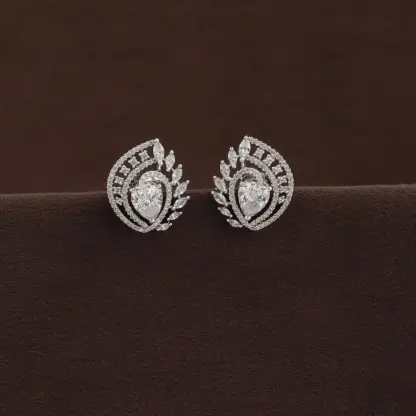 These exquisite small top earrings from the Guaranteed AD collection are designed to add a touch of elegance to any outfit. Featuring dazzling white American diamonds and a delicate pearl accent, they offer a timeless, sophisticated look. The rhodium plating ensures a smooth, polished finish that enhances their shine. Perfect for special occasions, gifting, or daily office wear, these earrings pair beautifully with sarees, Indian suits, kurtis, or formal attire. Whether you’re attending a party or a meeting, these earrings are a versatile addition to your jewelry collection, exuding modern charm and understated luxury.