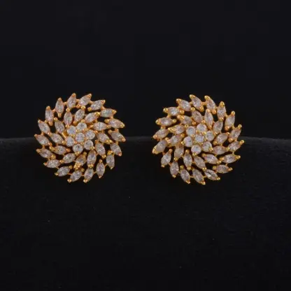 Elevate your elegance with this exquisite pair of Guaranteed AD Gold Plated Earrings from Shreehari’s Modern Collection. Designed with chabi for added charm and convenience, these earrings feature sparkling American Diamond stones that exude sophistication and shine. Perfect for special occasions, festive celebrations, or even office wear, they seamlessly blend tradition with a modern aesthetic. The radiant gold plating enhances their timeless appeal, making them a versatile addition to your jewelry collection. Pair them effortlessly with sarees, Indian suits, kurtis, or formal outfits to complete your graceful look. A perfect choice for everyday elegance and gifting alike.