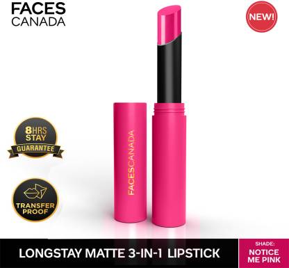 FACES CANADA Long Stay 3-in-1 Matte Lipstick(Notice Me Pink 06, 2 g)