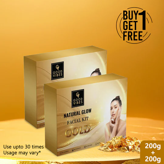 Good Vibes Gold Facial Kit is made with skin-benefiting natural ingredients and makes sure to give your skin the care it needs. It contains a four-step routine which helps rejuvenate your skin for glowing and healthy skin. This pack includes a Cleanser, Scrub, Cream and Face Pack. The cleanser gently removes dirt and makes it ready for the following steps. The scrub helps exfoliate the skin’s surface to get rid of dead skin cells. The cream helps lock in the nutrients in the skin and moisturises the skin. The face pack takes out the junk to give you a smooth texture. Welcome a lustrous glowing skin with Good Vibes!