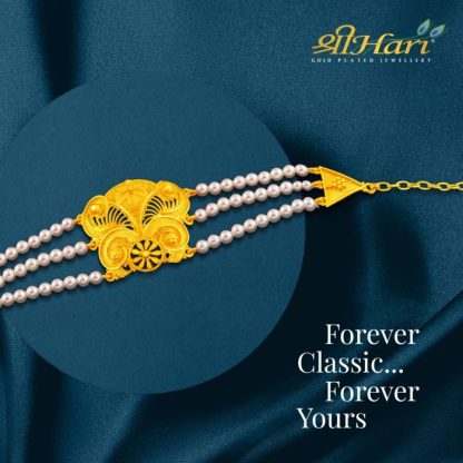 This exquisite gold-plated Mantasha is a stunning piece of traditional jewelry, designed to enhance your bridal, wedding, or festive attire. Crafted with fine pearls, it adds a touch of elegance and sophistication to any ensemble. The intricate design, combined with the lustrous gold plating, makes it the perfect accessory for special occasions. Ideal for pairing with sarees or lehengas, this Mantasha effortlessly complements your traditional look. Whether you’re a bride on your special day or attending a festive celebration, this pearl-accented Mantasha is sure to elevate your style and add a timeless charm to your outfit.