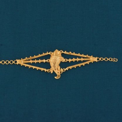 Enhance your bridal charm with this exquisitely crafted Gold Plated Mantasha in an elegant fish design, a timeless piece from Shreehari’s Traditional Collection. Meticulously designed with fine artistry, this mantasha reflects cultural beauty while adding a graceful touch to your wedding and festive attire. The gold plating gives it a luxurious finish, making it perfect for brides and women who adore traditional jewelry. Whether styled with a saree or lehenga, this piece uplifts your look with sophistication and heritage-inspired elegance. Ideal for weddings, bridal occasions, and special celebrations, this fish design mantasha is a statement of tradition, style, and feminine allure.