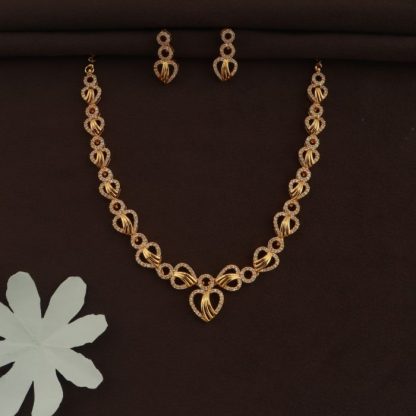 Enhance your elegance with this Guaranteed AD Mini Necklace Set, featuring a stunning heart-shaped design that exudes grace and charm. Perfect for festive wear, party wear, and special occasions, this exquisite set is adorned with dazzling American Diamond stones and finished with a radiant gold plating. Designed for the modern woman, it seamlessly complements sarees, gowns, and Indian suits, adding a touch of sophistication to any ensemble. Whether you’re attending a celebration or a grand event, this beautifully crafted necklace set is the perfect statement piece to complete your look with timeless elegance and sparkle.