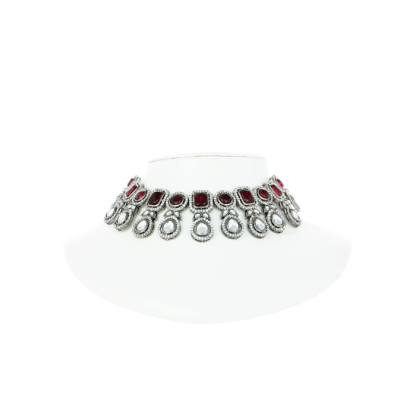 Enchant everyone around you by wearing this fusion necklace set. It comes with a pair of matching drop earrings secured with a push back closure. The necklace comes embellished with blue coloured stones in different shapes and sizes. With this marvellous piece of beauty, you can easily accentuate your ethnic look. Ideal for modern day women who wants minimalistic designs for their necklace or earrings. You will surely look like a diva when you pair it with traditional attires, like all types of saree. This set is suitable for special occasions, like weddings or parties or anniversaries, and more. Store the necklace piece in a moisture free box to prevent accidental damage.