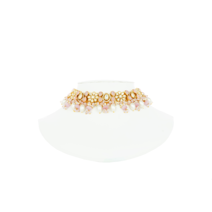 This necklace is just perfect for adding a dash of grandeur to your look. Featuring pink and white choker in floral motifs and embellished with beaded clusters. This is one of a kind Rajasthani inspired jewellery that would definitely draw attention to your neck. It can help you to look glamorous when you pair it with a shimmering saree. After every use, wipe off any dirt from the jewellery using a soft cloth. Buy this traditional Kundan studded choker style necklace to add some style statement to your look. This necklace set is perfect for special occasions like weddings or parties.