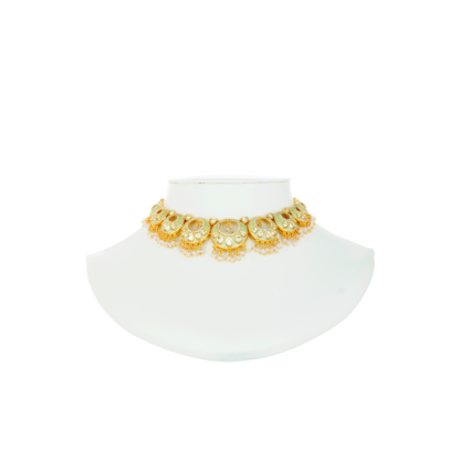 For all those fashionistas who love to remain in trend should go for contemporary jewellery sets. In this case, one can try out this kundan beaded necklace, which is a perfect amalgamation of modern and traditional designs. This beautifully crafted set comes with intricate detailing of meena work in mint base colourwith stone studded round pieces with pink bead drops. This set is perfectly suitable for special occasions like weddings or parties. Pair it with a silk saree to make heads turn. Make this trendy necklace a part of your jewellery collection today. Avoid contacting the Rajasthani inspired necklace with any chemicals or sprays.