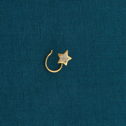 Add a sparkling touch of elegance to your traditional look with this Exclusive Star Design Nose Pin from Shreehari’s Traditional Collection. Crafted with Guaranteed AD stones and finished in rich gold plating, this nose pin beautifully combines timeless charm with modern sophistication. Perfect for festive wear, traditional functions, and special occasions, it enhances your facial features with a delicate yet captivating shine. The star-shaped design adds a unique and graceful appeal, making it a must-have accessory for every jewelry lover. Pair it effortlessly with sarees, Indian suits, or kurtis to complete your ethnic ensemble with a radiant, refined glow.