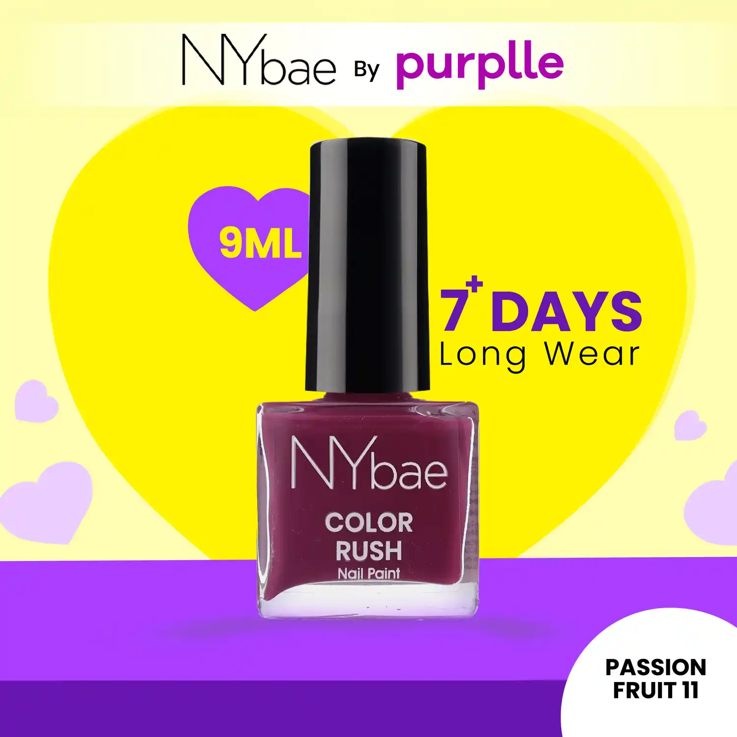 NY Bae Color Rush Nail Paint – Passion Fruit 11 (9 ml) | Chip Resistant | Long Lasting | Quick Dry | Gel Nail Polish