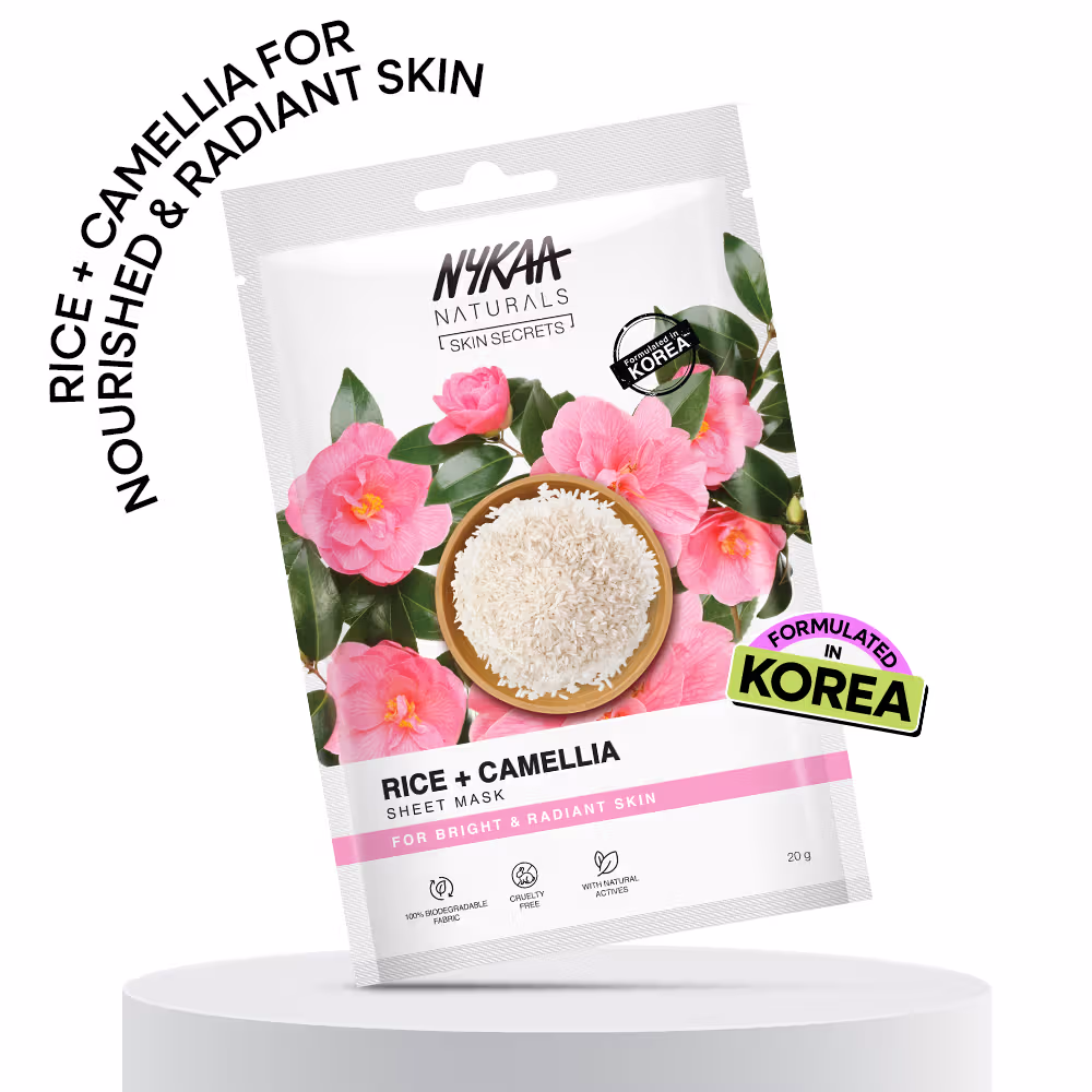 Nykaa Rice + Camellia Sheet Mask For Nourished & Radiant Skin-Formulated In Korea – For All Skin Types
