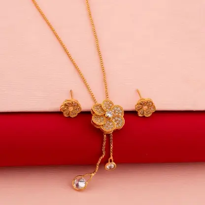 Elevate your style with our Gold-Plated Floral Tie Set, a perfect blend of elegance and tradition. Ideal for everyday wear, office attire, or a thoughtful gift, this set boasts a stunning box chain and a captivating floral design locket adorned with sparkling American diamonds. The regal gold plating adds a touch of opulence, making it suitable for all occasions. Pair it effortlessly with sarees, kurtis, or Indian suits to enhance your overall look. Embrace the beauty of our Traditional Collection and let this Tie Set become your signature accessory, adding a touch of sophistication to every ensemble.