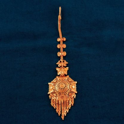 This exquisite gold-plated Tika is the perfect accessory to complete your bridal look. Designed to add an element of elegance and tradition, it features intricate detailing that complements any wedding or bridal attire. The Tika is a timeless piece that pairs beautifully with sarees and lehengas, making it ideal for traditional occasions. The gold plating adds a rich, luxurious touch, ensuring that you shine on your special day. Whether you’re the bride or a guest, this Tika adds a graceful, royal touch to your ensemble, elevating your look with its classic, cultural charm.