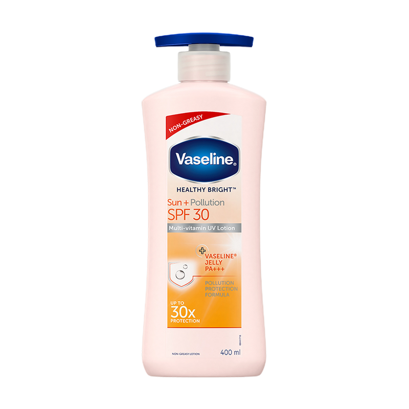 Vaseline® Healthy Bright Sun and Pollution Protection body lotion with pollution protection formula (ppf) effectively shields your skin and spf30 pa+++ protects from UVA, UVB and skin pollutants. It’s a daily use lotion that not only protects skin from sun and pollution in the city but also deeply moisturizes to help restore its natural glow.