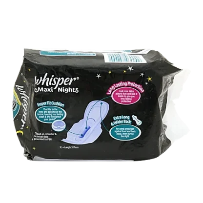 Whisper Sanitary Pads – Maxi Nights XL, with Wings Extra Heavy Flow, 7 pcs